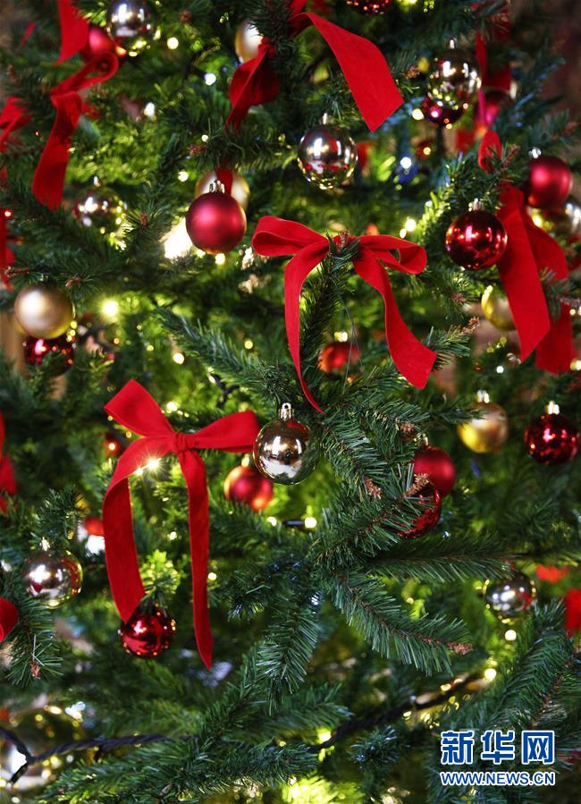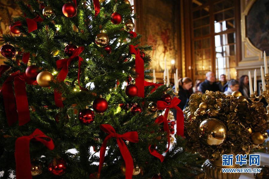这是12月29日在法国巴黎以北的尚蒂伊城堡拍摄的节日装饰。 为庆祝圣诞季和即将到来的新年,位于巴黎以北的尚蒂伊城堡近日节日气氛浓郁,巨型的圣诞树、长约12米的节日餐桌、缤纷彩灯等将这座城堡装点得分外迷人。 新华社记者高静摄
