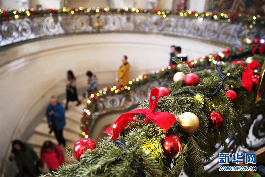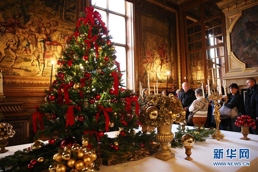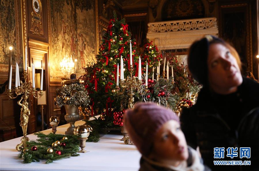12月29日,人们在法国巴黎以北的尚蒂伊城堡参观。 为庆祝圣诞季和即将到来的新年,位于巴黎以北的尚蒂伊城堡近日节日气氛浓郁,巨型的圣诞树、长约12米的节日餐桌、缤纷彩灯等将这座城堡装点得分外迷人。 新华社记者高静摄