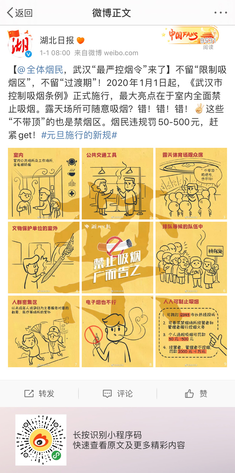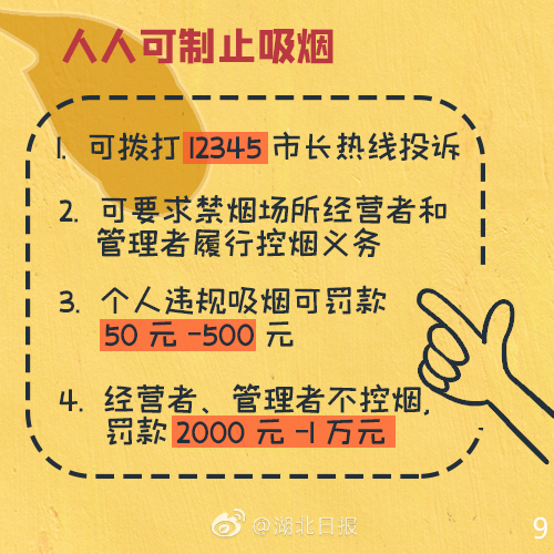 不留“限制吸烟区”,不留“过渡期”!2020年1月1日起,《武汉市控制吸烟条例》正式施行,最大亮点在于室内全面禁止吸烟。露天场所可随意吸烟?错!错!错!这些“不带顶”的也是禁烟区。烟民违规罚50-500元,注意事项赶紧get!