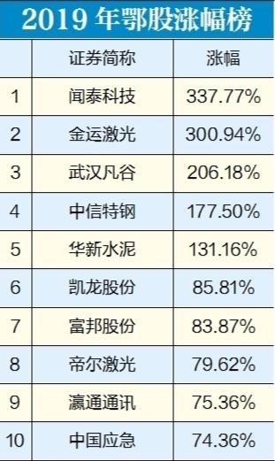 鄂股是否跑赢大盘?哪些湖北上市公司股价在2019年表现抢眼?