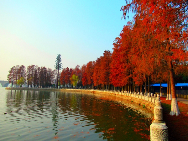 冬日美景,墨水湖边水杉格外鲜艳
