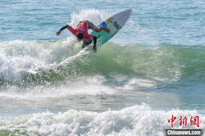 开幕当日,万宁天气凉爽多云,日月湾风急浪高,选手们在浪尖跳跃、冲刺,展示矫健身姿和高超技巧,引来周边不少游客驻足观赏。