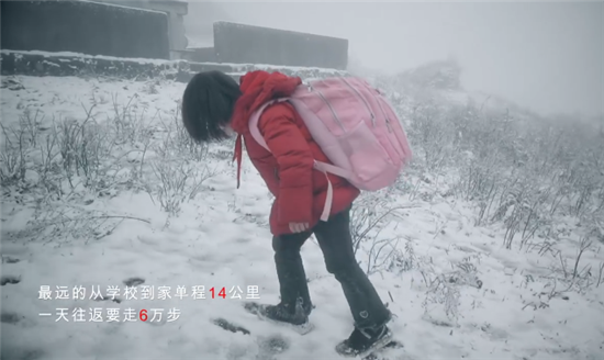 在云南省昭通市镇雄县花山乡黄连小学,有大约200名孩子需要长途跋涉求学,其中大部分是留守儿童,他们最远的距离学校单程达14公里,一天上学、放学就要走6万多步。