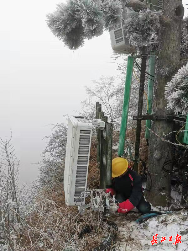 工作人员在武当山进行基站建设