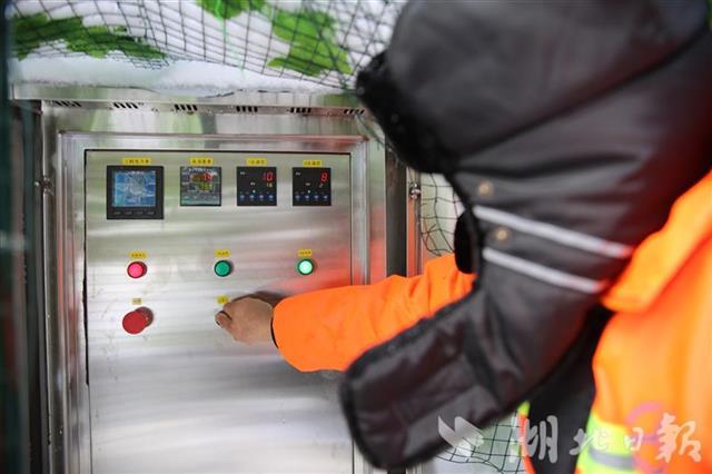 工作人员打开热熔除冰系统。郭裕铭 摄