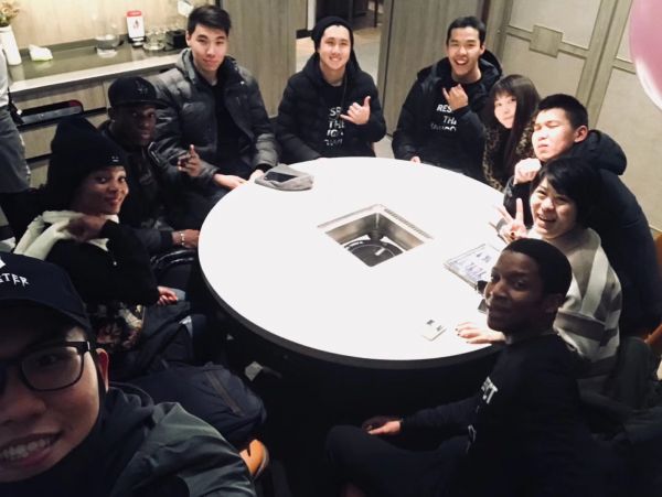 去年,施大华和在武汉认识的朋友们吃团圆饭、欢度春节 本人提供