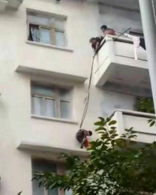 老人用绳吊7岁男童下楼救猫?看完大家都惊了!事发1月5日下午,四川南充市蓬安县,一位老人在百顺街老百货公司宿舍楼上,用一根绳子绑着男童的腰,将他从5楼吊至3楼一窗户遮雨台上,只为救被困在4楼阳台的一只猫。