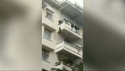 对此,辖区居委会回应称,男童7岁,在社区小学读一年级,其父亲在深圳打工。当天被救的小猫就是男童家的,在楼上拽着绳子的正是他的外婆和舅舅。