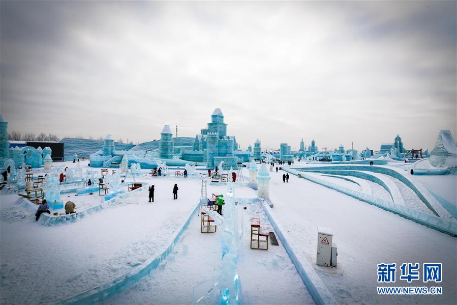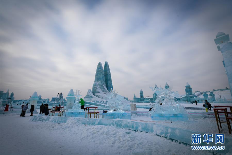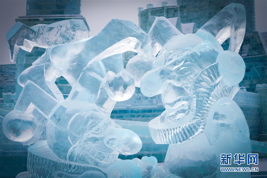 冰雕师在哈尔滨冰雪大世界内雕刻出主题各异的冰雕作品(1月8日摄)。 近日,在哈尔滨冰雪大世界园区内举行的各项冰雕赛事中,经过来自世界各地的冰雕选手悉心雕琢,一块块冰变身为精美的艺术作品,数十座冰雕仿佛晶莹剔透的出“冰”芙蓉。 新华社记者 王松 摄