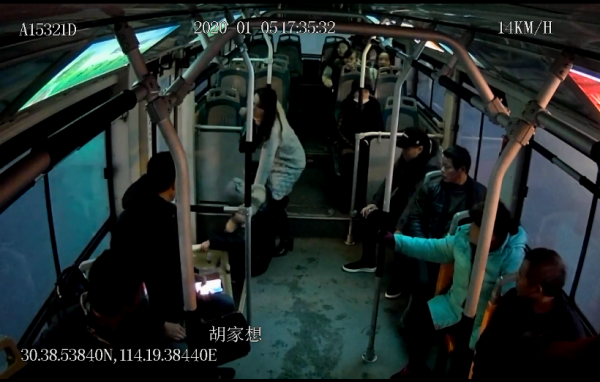 “师傅,师傅!有乘客不舒服。”车载监控视频显示:1月5日17时35分,武汉公交707路31岁的司机胡家想驾驶2218号车,运营至百步亭花园路与解放大道的路口时,车厢上一位女乘客突然呼喊道。胡家想随即将车开至附近的百步亭花园路解放大道口车站,随后上前查看,发现乘客汪女士坐在车后门台阶处,面色惨白,一直痛苦地呻吟着。