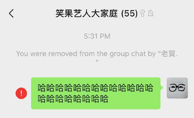 此前,有网友爆料称池子和李诞不和,引发热议。1月9日晚,池子晒出一张聊天记录截图,截图显示,池子在笑果艺人大家庭的群聊中发了一条“哈哈哈”的讯息,却发现被笑果文化CEO贺晓曦移除了群聊,导致信息发送失败。池子发文表示:“朋友们,这就是脱口秀,笑果脱口秀”,并发了一长段“哈哈哈”,还调侃贺晓曦:“你挺有意思啊,你怕我哈哈是吗?”