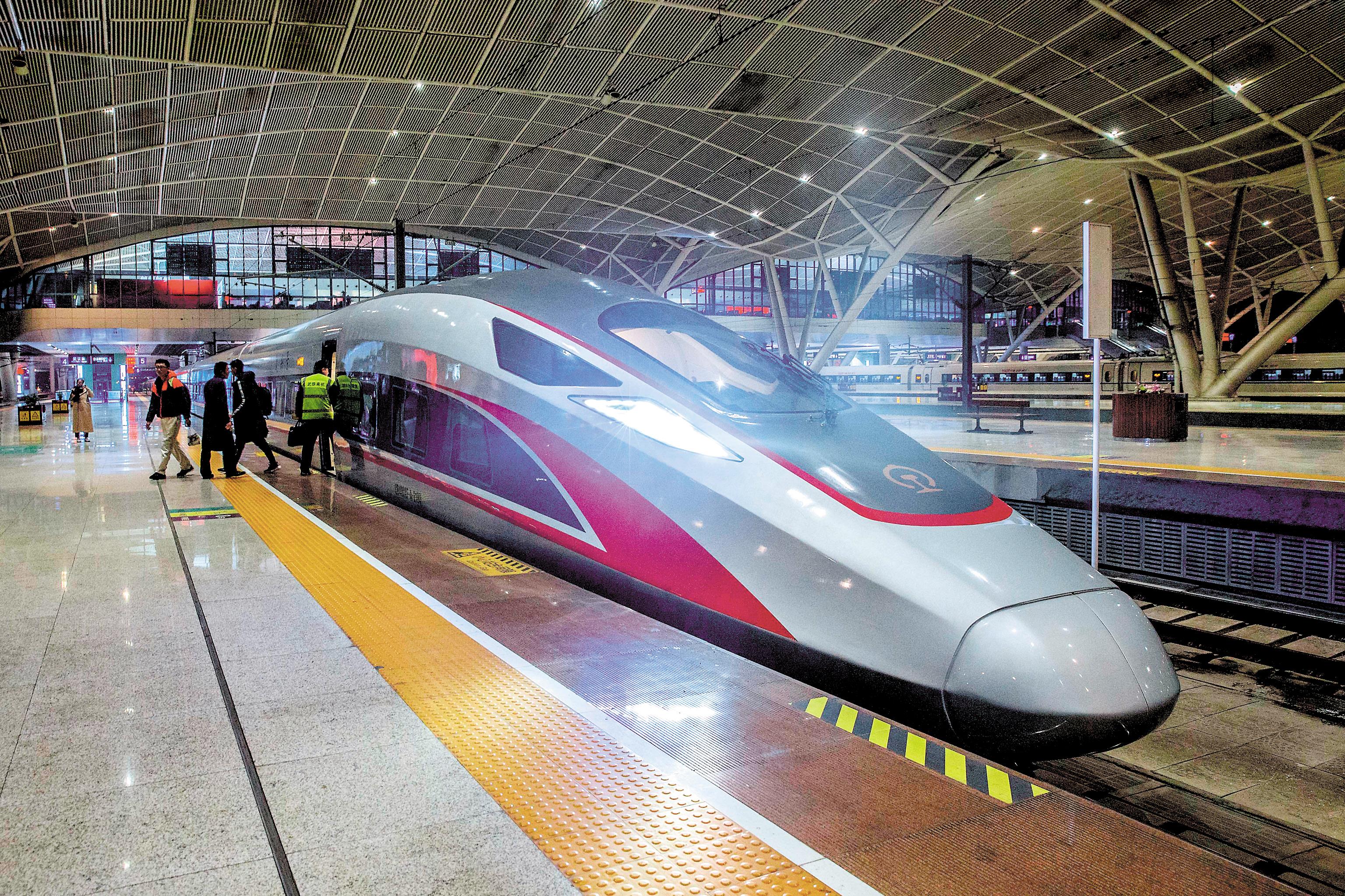 1月7日23时42分,车号为CR400AF-A-2190的“复兴号”动车缓缓驶入武汉火车站5站台。这是中国国家铁路集团有限公司配属给武汉的首列加长版“复兴号”动车,另外2列近期也将陆续到汉。加长版“复兴号”动车为16节编组,采用8动8拖配置,总长度为414.15米,总定员达1193人。新动车完成磨合试验后将陆续投入到春运中。