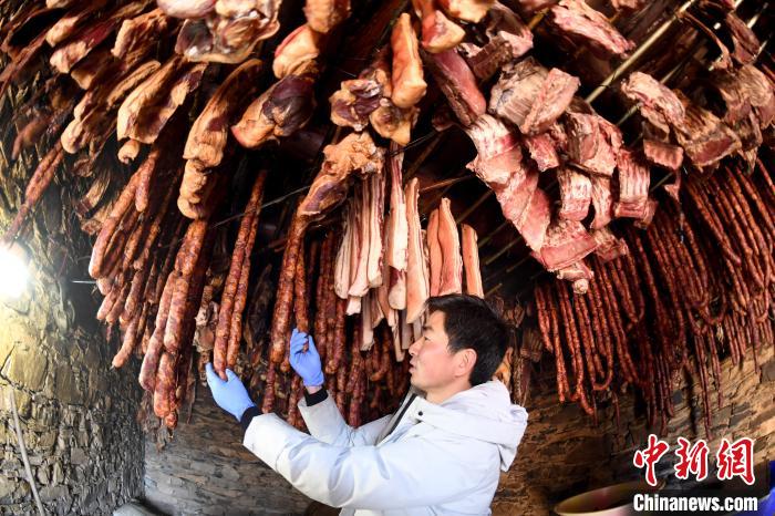 2020年春节将至,“云端餐厅”的房檐下,挂满了香肠腊肉、牦牛肉干、风干土鸡,这都是村民准备销售的年货。