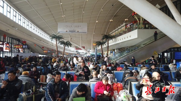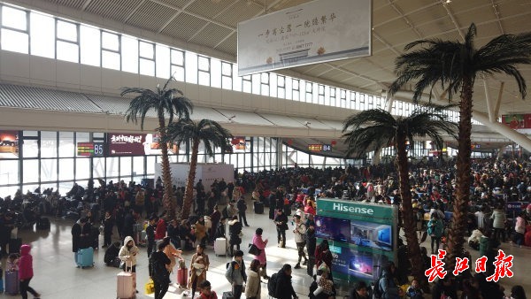 据介绍,汉口站预计高峰时间在1月22日,客流量预计14.5万人次。(通讯员邱晟 黄子翔 记者杨涛 摄)