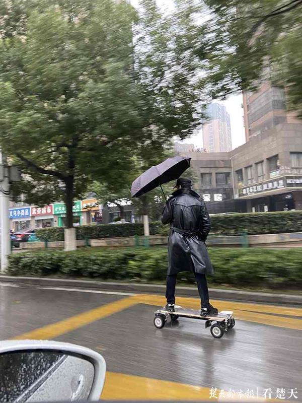 该网友告诉记者,今日上午8时许,她乘车在洪山区丁字桥南路附近看到了当时的一幕,这样的电动滑板她还是第一次见到,随即拿出手机录下了一段视频。