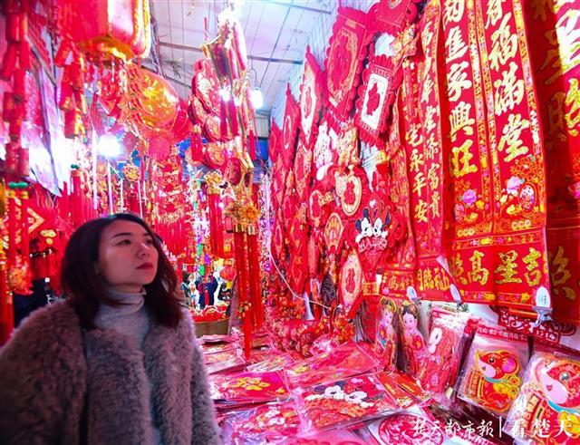 现已临近春节,市民开始装点家的春节气氛,一串串火红的中国结、吉庆的红灯笼、红红的长电鞭炮、祝福贴纸、春联是不少市民必要的节日商品,在市场中,人们川流不息,选购自己需要的,节日商业已显高潮。