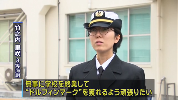 竹之内在大学毕业后,于2017年3月加入海上自卫队,2018年12月起在护卫舰“冬月”执行任务。竹之内对记者表示:“我不会特别在意第一个女队员的事情,愿和同伴一起切磋琢磨,努力成为优秀潜艇员。”