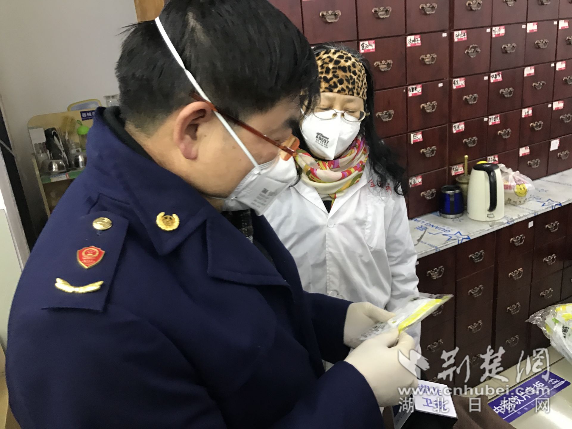 荆楚网客户端-荆楚网消息(记者张城 通讯员吴杰鹏)1月26日,记者从湖北省市场监管局获悉,市场监管部门近日在武汉市洪山区群康大药房查获一批无中文标识的“问题”口罩。经现场清点,共发现相关口罩850片,执法人员现场依法采取了扣押措施,并予以立案查处。