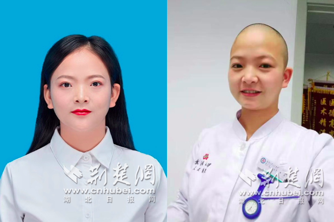 投入抗肺一线的单霞毅然剪掉长发前后对比照。(通讯员供图)