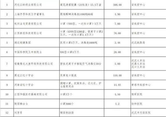 楚天都市报1月31日讯(记者楚田)1月30日,湖北省红十字会第一次公布了本次疫情以来该会接收捐赠物资使用情况。其中,协和医院收到个人捐赠的口罩3000个,捐款1.2万元。武汉市仁爱医院、武汉市天佑医院分别收到企业捐赠N95口罩1.6万个,共收到捐款36万元。其中,武汉仁爱医院获得的捐赠遭到质疑。