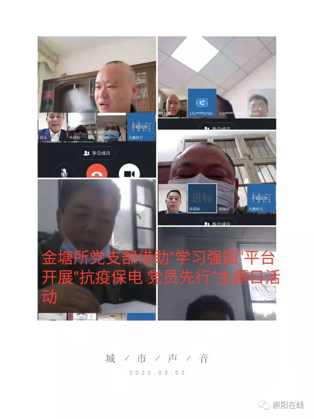 (桂薪雄) 2月2日上午9时,龚云兵在学习强国app上,主持开展了国网咸宁崇阳县供电公司金塘党支部第一次视频党员大会。
