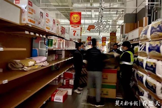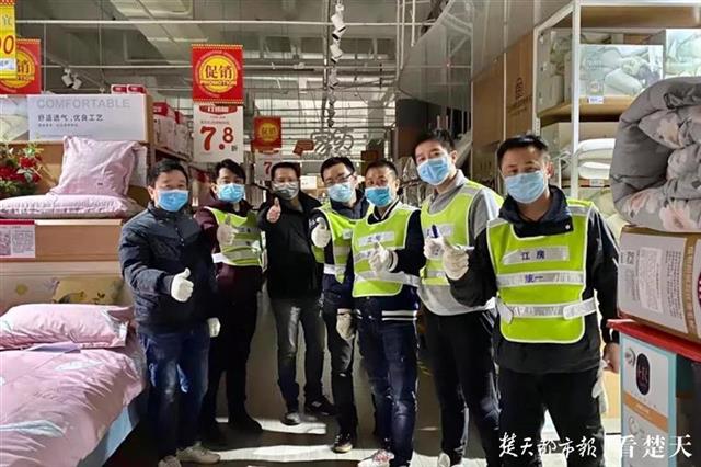 凌晨00:39,接到电话通知的江汉店防损员工金为民、百货经理喻小军立马出门赶到位于汉口循礼门的店内,组织员工一起盘点库存,将一床床电热毯打包装车,朝着下一个店面驶去。