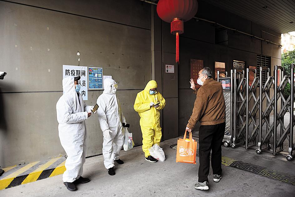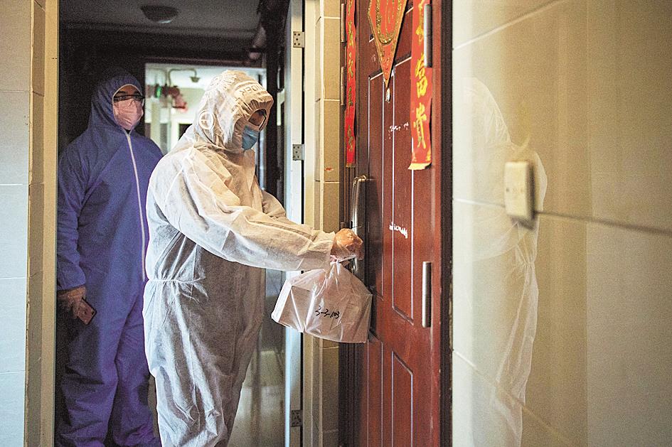2月5日,武汉市武昌区中南路街百瑞景社区,社区工作者为居民送药上门。 (湖北日报全媒记者 蔡俊 摄)