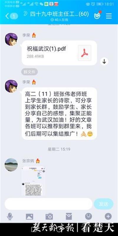 班主任胡慎友老师介绍,本来寒假作业里也布置了诗词创作的内容,疫情爆发后,临时要求班刊第二期征集“抗击疫情武汉必胜”专刊文章,向全体学生及家长征集文章、诗词、歌曲、视频等作品,“目的在于调节学生紧张情绪,充实学生的假期生活,鼓舞信心。”
