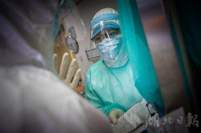 2月9日,武汉市红十字会医院ICU病房,四川医疗队护士陈佳蕊为一名重症患者换药。(湖北日报全媒记者 柯皓 通讯员 邱琼 姚祖东 摄)