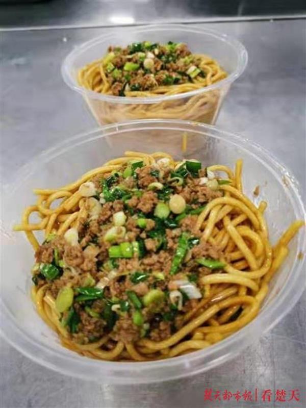 在疫情当头的特殊时刻,平时能很容易采购的食品现在却困难重重。在原料、压面机设备等缺乏的情况下,为了让一线医护人员吃好饭,大家齐心协力,找到解决途径:利用目前供应充足的汉味小吃热干面,做出独特的炸酱面。“虽然不是最地道的北方面食,但能够吃到这样的主食已经很不错了。”河北医疗队领队徐卫华表示很暖心。