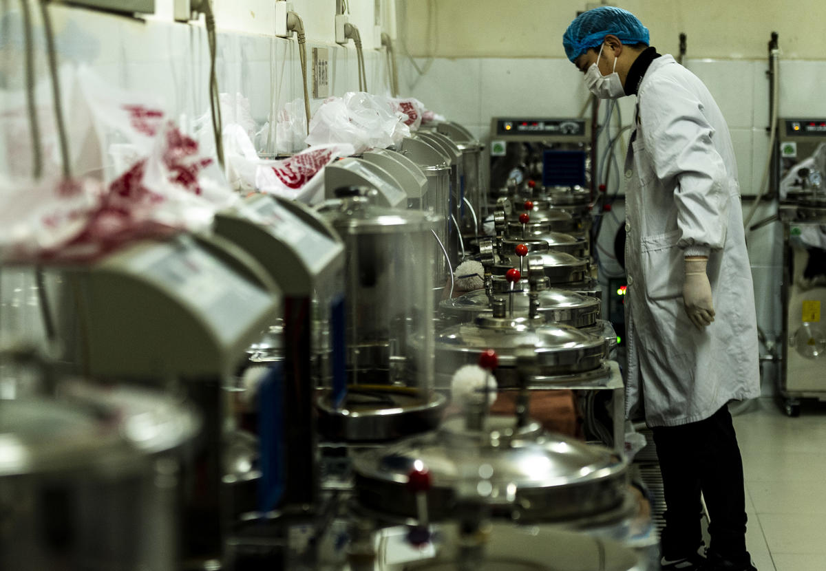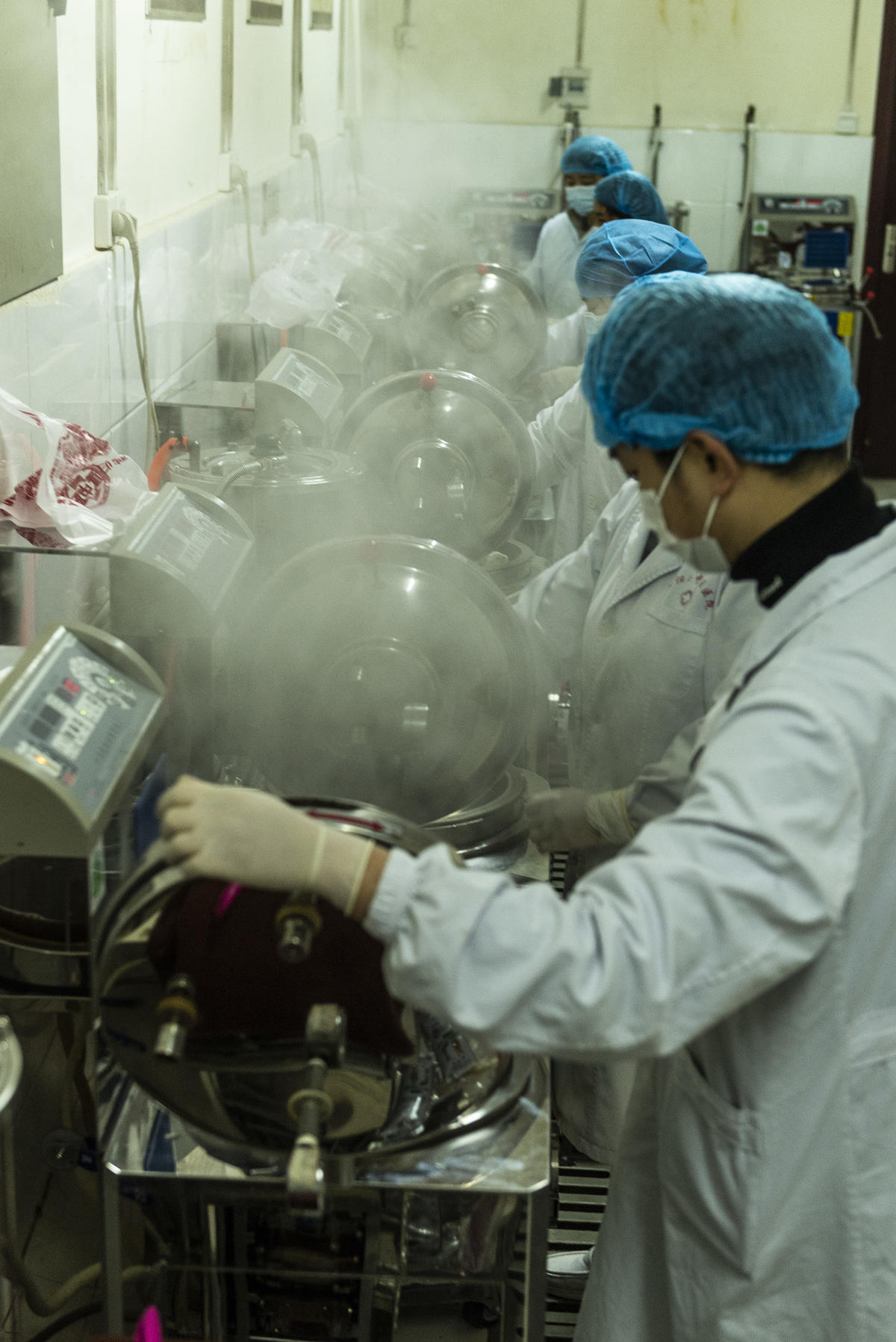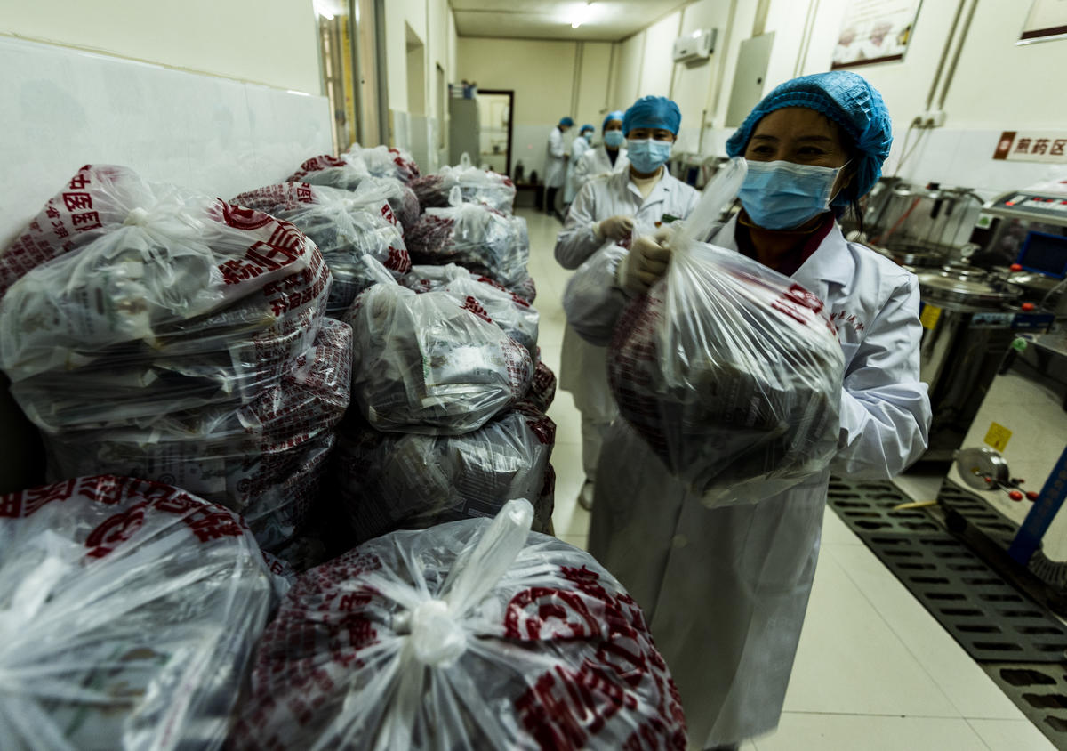 2月15日,秭归县中医医院中药师在煎药房将熬制好的中药统一存放。
