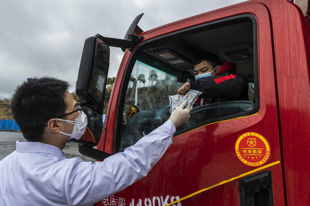 2月15日,秭归县中医医院医生将熬制好的中药送给经过秭归的货车司机。