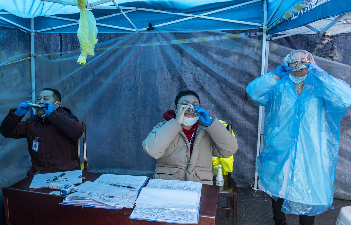 2月15日,秭归县翻坝高速港口疫情防控值勤点工作人员在喝中药。