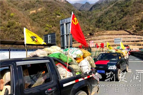 当天,4辆满载着该村群众自发捐赠的腊肉和蔬菜的卡车,驶向兴山县城防疫一线。