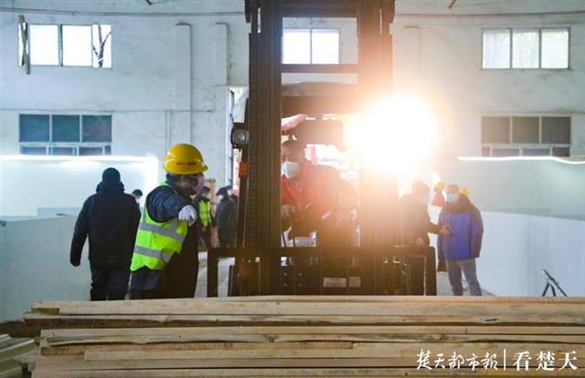 此时,在长江新城方舱医院建设现场,从谌家矶红桥工业园内传来一阵阵机器轰鸣声,一辆辆大型运输车正装载着各类建筑材料,排队依次驶入园区内。戴着白、黄、红各色安全帽的工人们正忙碌地在工地穿梭,现场热火朝天。