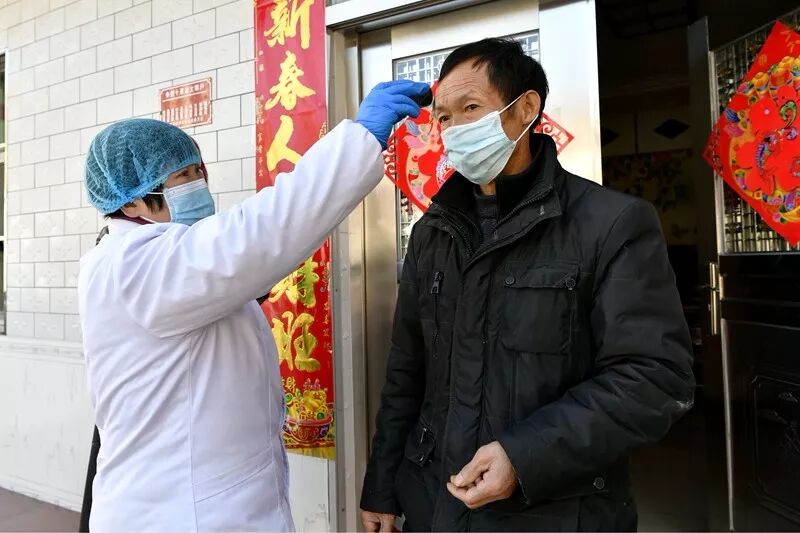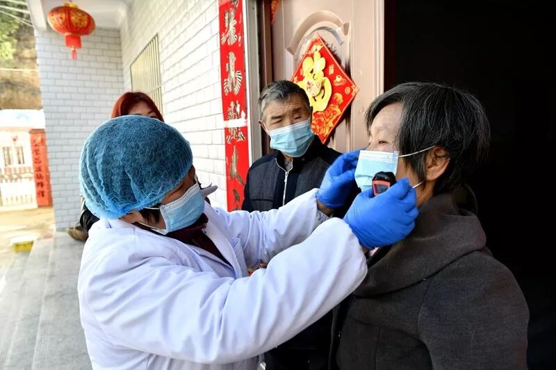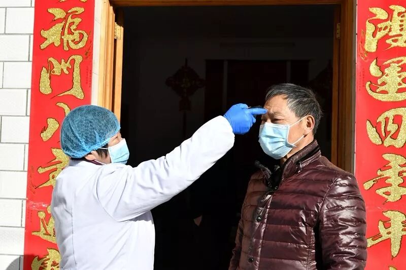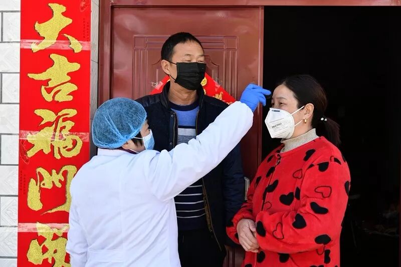 1月22日(农历腊月二十八)开始,宋朝梅就踏上了“防疫征程”,每天早上8点,顾不上吃早饭,就戴上口罩,拿着测温仪和体温登记表开始入户测量体温,向群众宣讲防控知识,并免费为村民发放口罩。