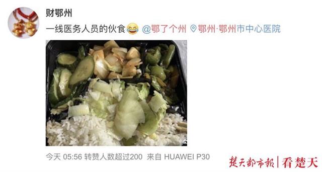 楚天都市报2月21日讯(记者梁传松)这两天,一段15秒的抖音视频在网上被广为传播,鄂州一女子将丈夫分发的水果和蔬菜拍成视频在网上炫耀,刺痛了大众的神经。鄂州网民纷纷晒出50元的“菜包”比周边黄石、黄冈的菜价要高得多,更有网友晒出一线人员工作人员的盒饭全是青菜。2月20日,多篇贴文指责“贵州捐的菜,不止烂在仓库……”引发广大网民关注。当晚,鄂州市新型冠状病毒感染肺炎疫情防控指挥部宣传组作出了回应。
