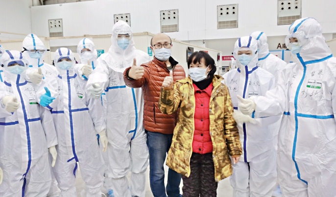 武汉客厅方舱医院两位患者康复出院