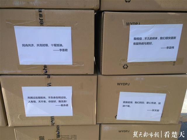 据了解,这些感人的话语,都是青岛维勒日用品股份有限公司的员工自动写上去的,表达了对十堰人民深厚的感情,深切的关爱。“青岛维勒日用品股份有限公司的员工真是太有心了,十堰人民太感动了!”十堰市人民医院的一名一线医护人员说。