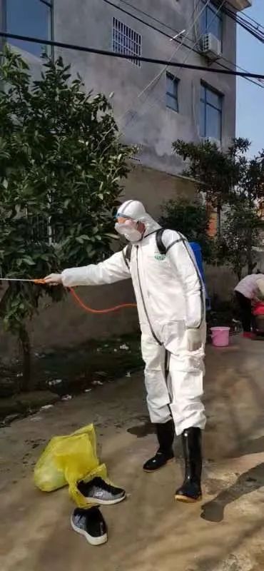 有安全感的“杀手”。只有完全彻底地消灭病毒,才能切断传播途径,扑灭疫情。消毒消杀组作为控制疫情的尖兵,承担着这一光荣而又艰险的任务,在队长周青谷的带领下,奔赴各个疫点、疫源地及各重点场所,面对存在被病毒感染的风险,面对含氯试剂对眼睛及呼吸道、皮肤黏膜的刺激,每天背着几十斤重的喷雾器、烟雾消毒机在烟雾弥漫中对场地、物品、车辆等进行消毒,徒步爬上六七层的楼梯,累得气喘吁吁、汗流浃背。为节约防护服和N95口罩,他们的手被磨破或是被84消毒液侵蚀,他们的衣服变成了“迷彩服”,即便如此,他们依然风雨无阻,日夜坚守岗位,马不停蹄,令行禁止,一心只为早日扑灭疫情。