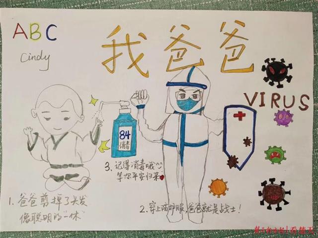 楚天都市报2月24日讯(记者廖仕祺 通讯员周珊)“爸爸剪掉了头发,像聪明的‘一休’,穿上防护服,爸爸就是战士!记得消毒哦,等你平安归来!”昨日,长江航运总医院呼吸内科五病区汪瀚医生在朋友圈晒出爱女和妻子合作画的名为“我爸爸”的漫画。