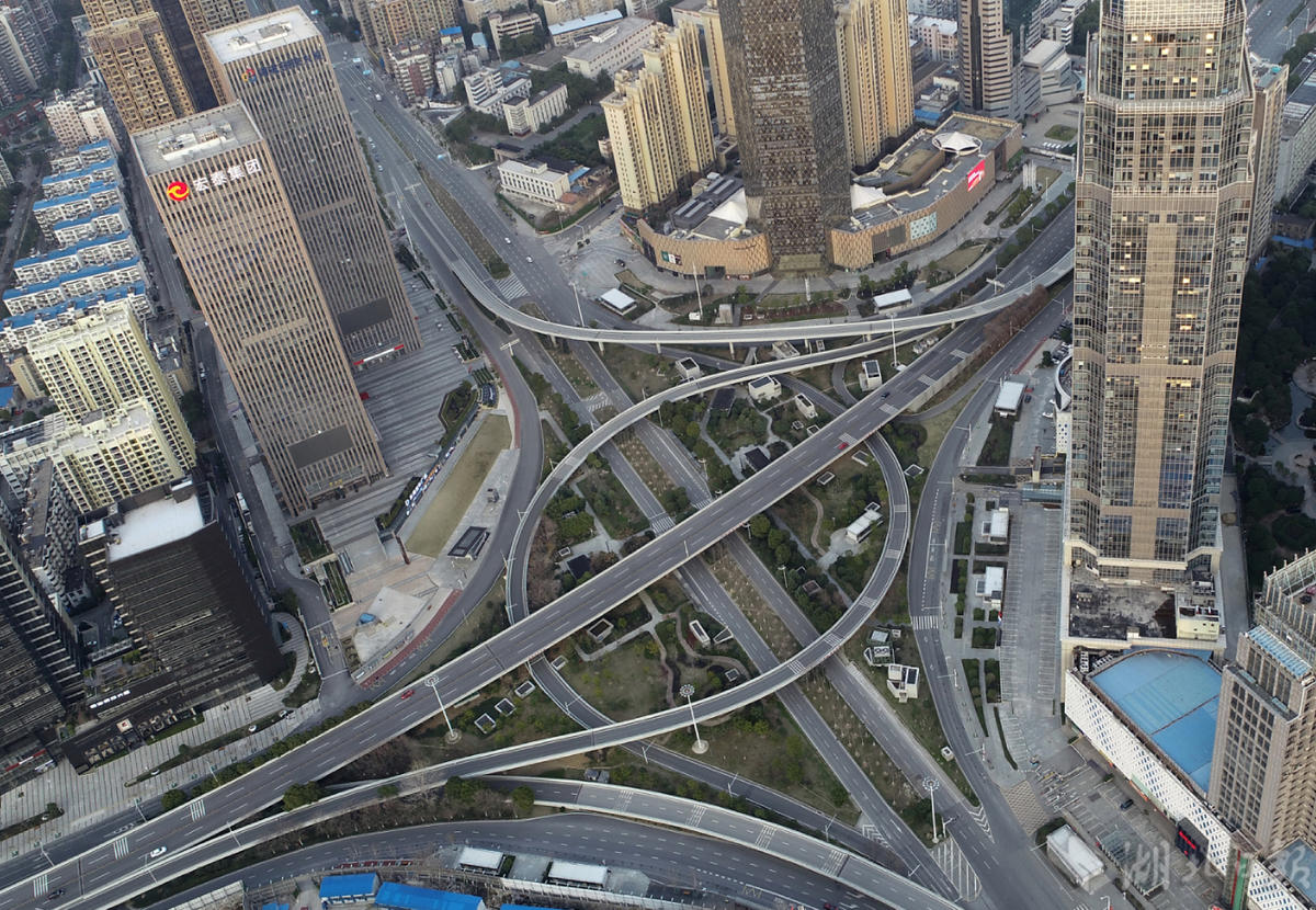 2月20日,武汉岳家嘴立交桥鸟瞰。(湖北日报全媒记者 周立新 摄)