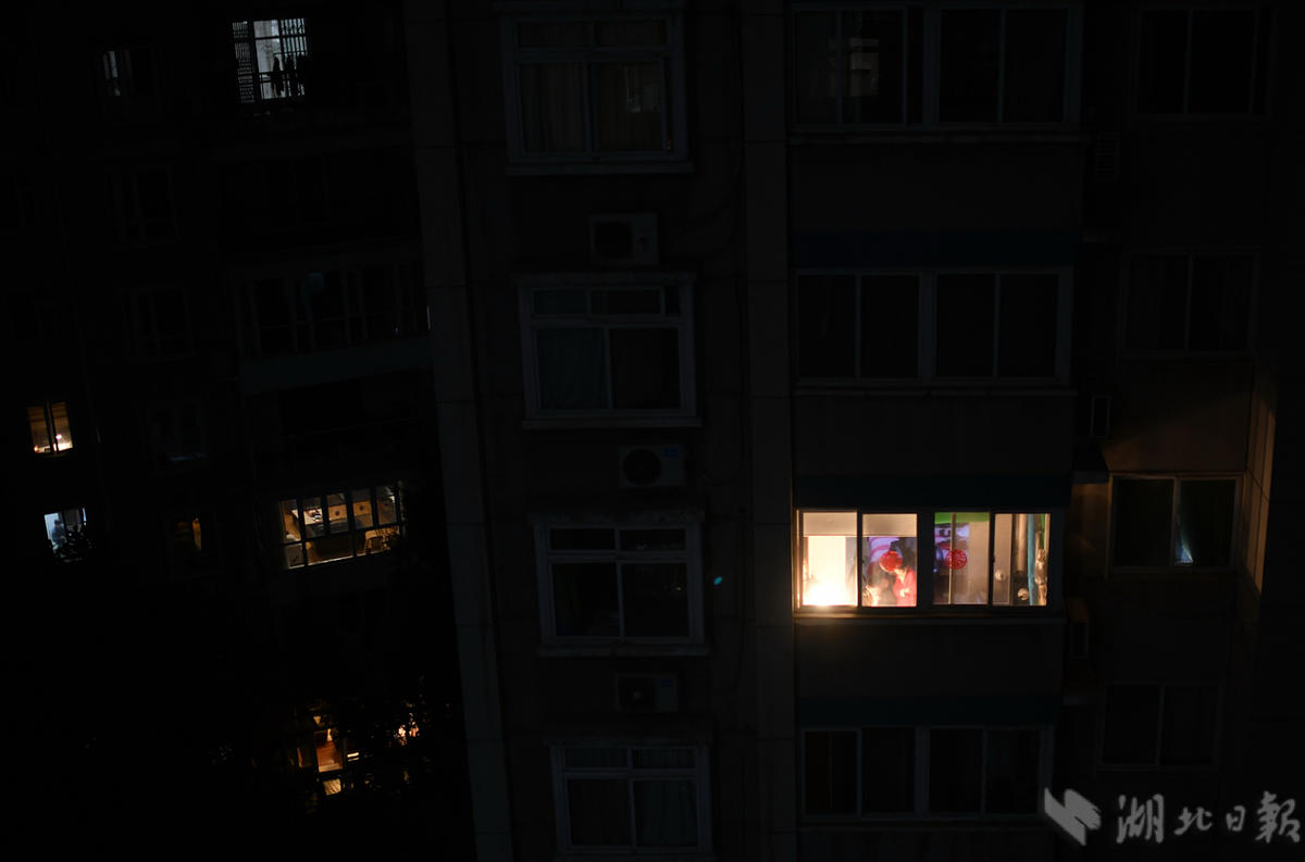 2月22日晚6时许,武汉市徐东社区东亭花园居民楼里灯光渐亮。(湖北日报全媒记者 周立新 摄)