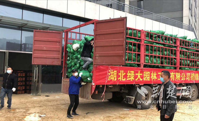 湖北绿大园林工程有限公司向武汉花山街捐赠55吨蔬菜。通讯员供图