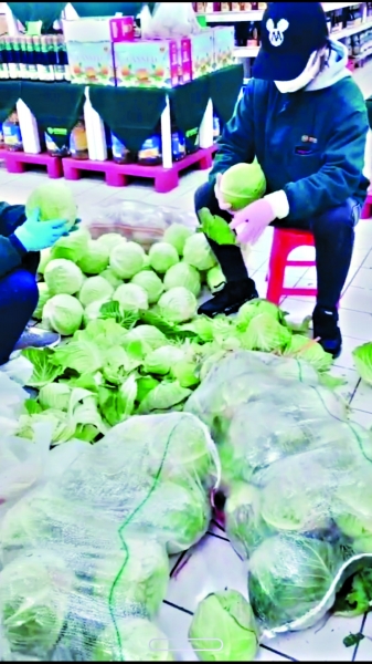 武商超市龙庭店 包菜外层剥掉以保证新鲜到社区