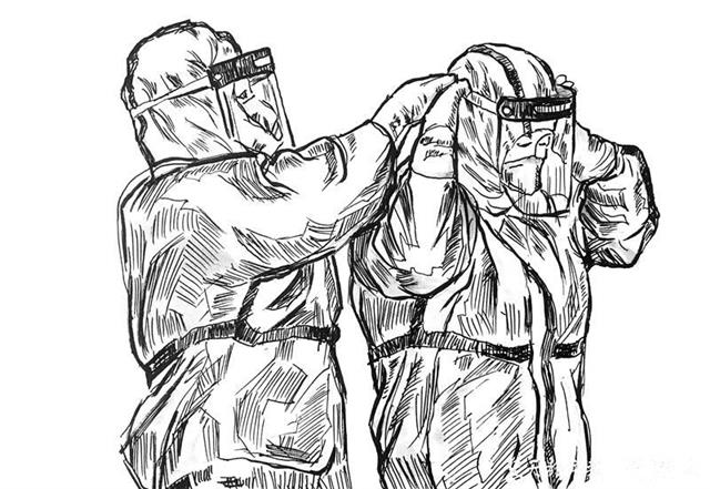 在作画手法上,陈华文以线条造型为主。作画的过程中,每一幅完稿后,他都会在微信朋友圈里秀一秀,还有同道中人对画作提出宝贵的改进意见。他说:“这些都给我莫大的鼓励,我感到不是一个人在作画,是很多人都在为武汉加油。”