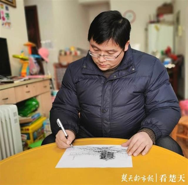 在钢笔素描创作过程中,陈华文激情满满,每一幅画都是一气呵成。“倘若是在平常,我是不敢想象的。毕竟我画的是我热爱的城市,这座城市正在与病毒鏖战。”他说。