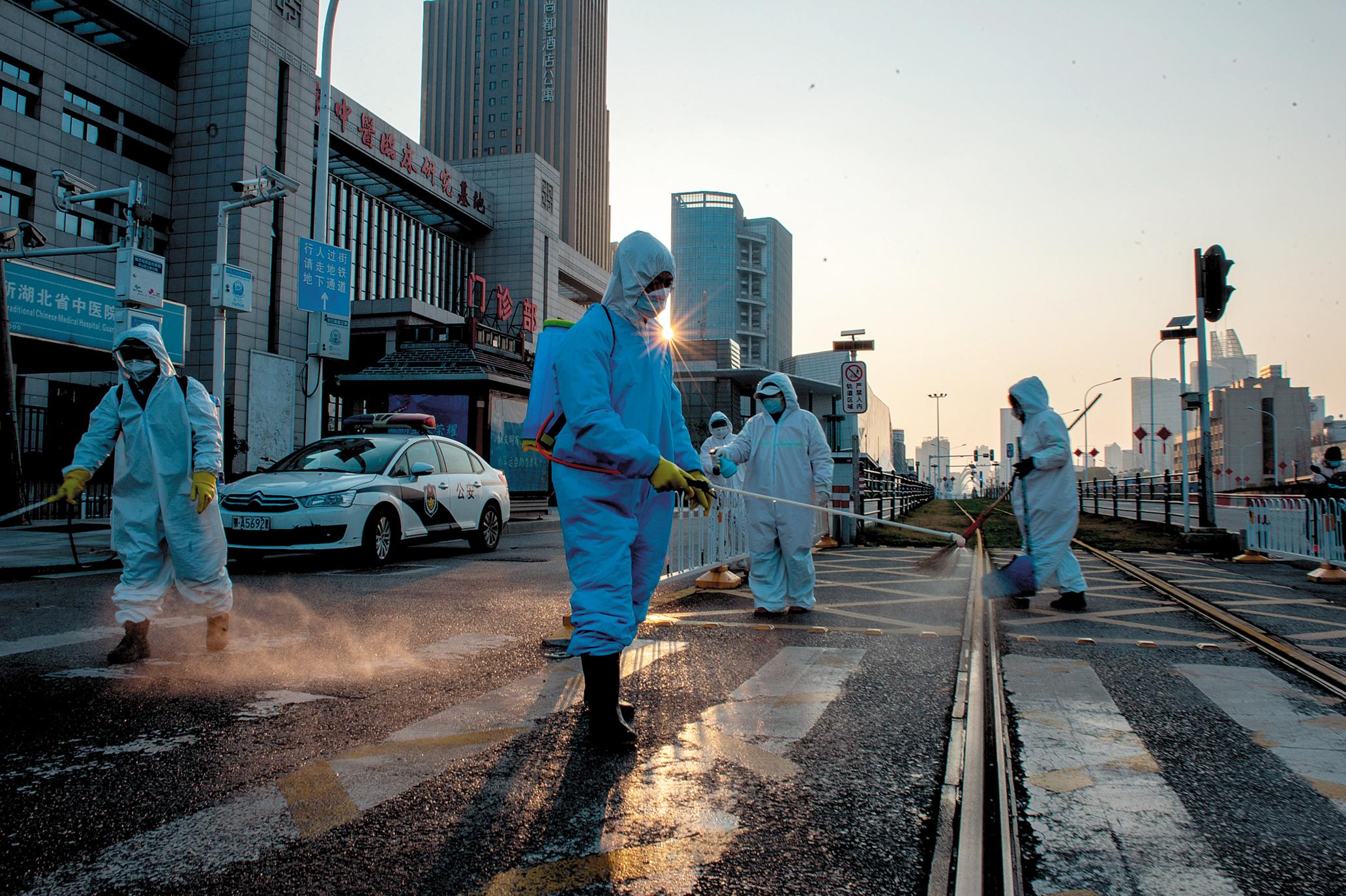 3月1日凌晨4点,刘萍的闹钟响了。她简单洗漱后,戴好口罩和手套,穿好防护服,早早来到武汉协和医院门口,开始对医院周边道路、设施进行清扫和保洁。从大年三十至今一直这般。与过去不同的是,除了路面清洗清扫和垃圾清运外,刘萍还要背着30多斤重的消毒水,对所辖区域进行消杀防疫。