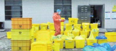 “每天产生的医疗废物较多,在这里要对所收集的医疗废物进行检查、药物喷洒消毒、贴标装箱密封、紫外线消毒等。消杀结束后,专业公司用集装箱车辆托运至回收点,再次进行消毒处理后集中焚烧。”梁小牧说。