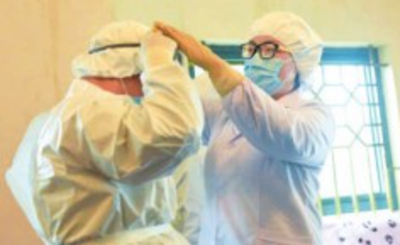 穿隔离服、套两层手套、戴口罩面罩、穿胶鞋,孝感市中心医院东南院区医疗污物运输组组长陈钊经过半个小时的防护套装整理,带领着6名队员来到了隔离病房的污物专用通道。